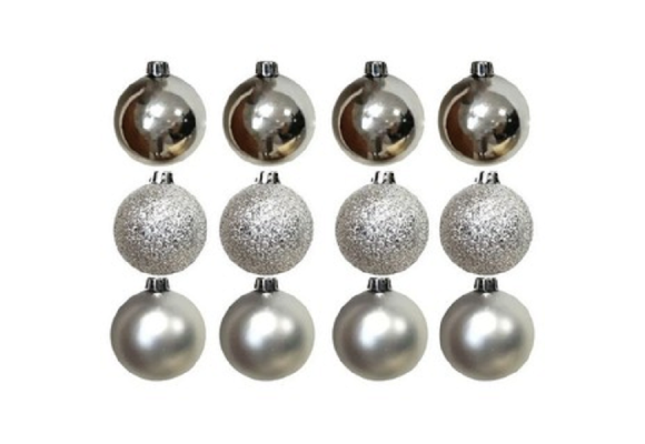BOLA NATAL EM TUBO MISTA C/12 UND PRATA 6CM REF-67110003
