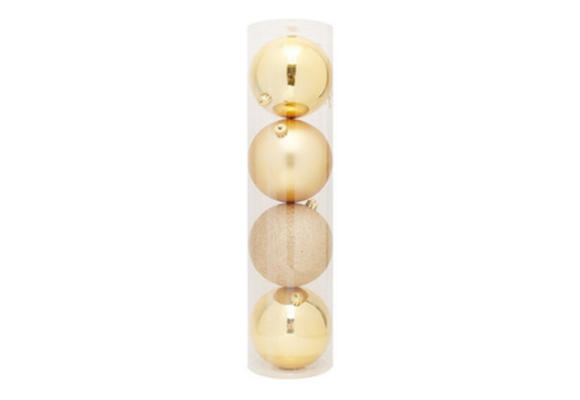 BOLA NATAL EM TUBO MISTA C/4 UND CORES SORTIDAS 10CM REF-67112013