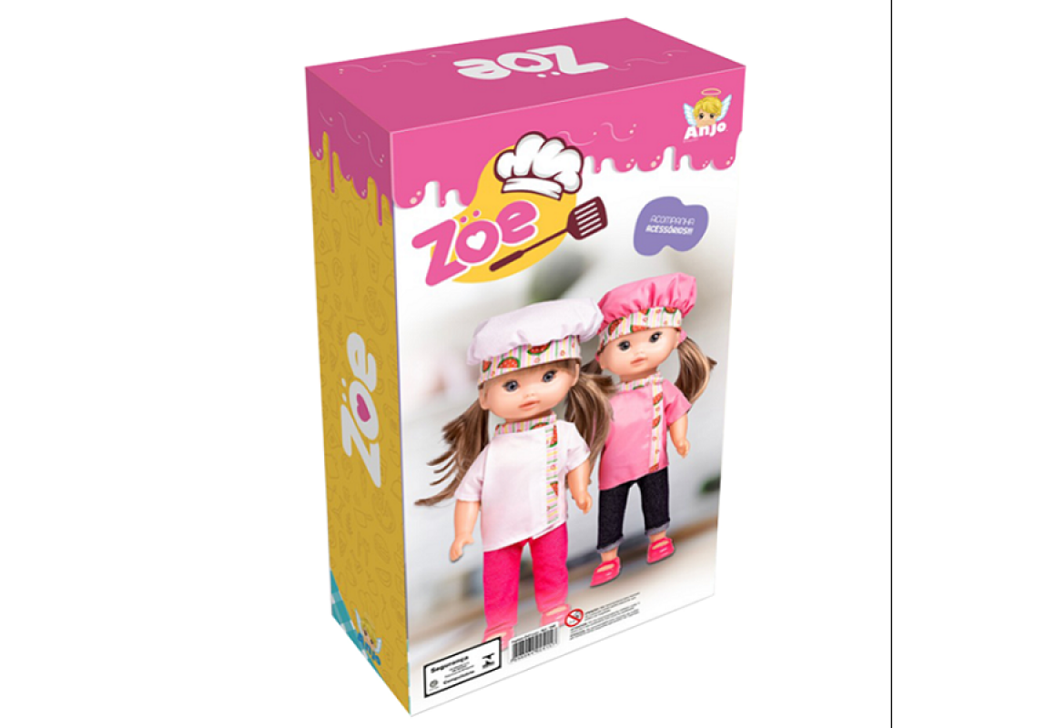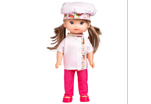 Linda Boneca em 100% vinil atóxico. Muito macia e com um cheirinho delicioso. Acompanha acessórios de cozinha para brincar.