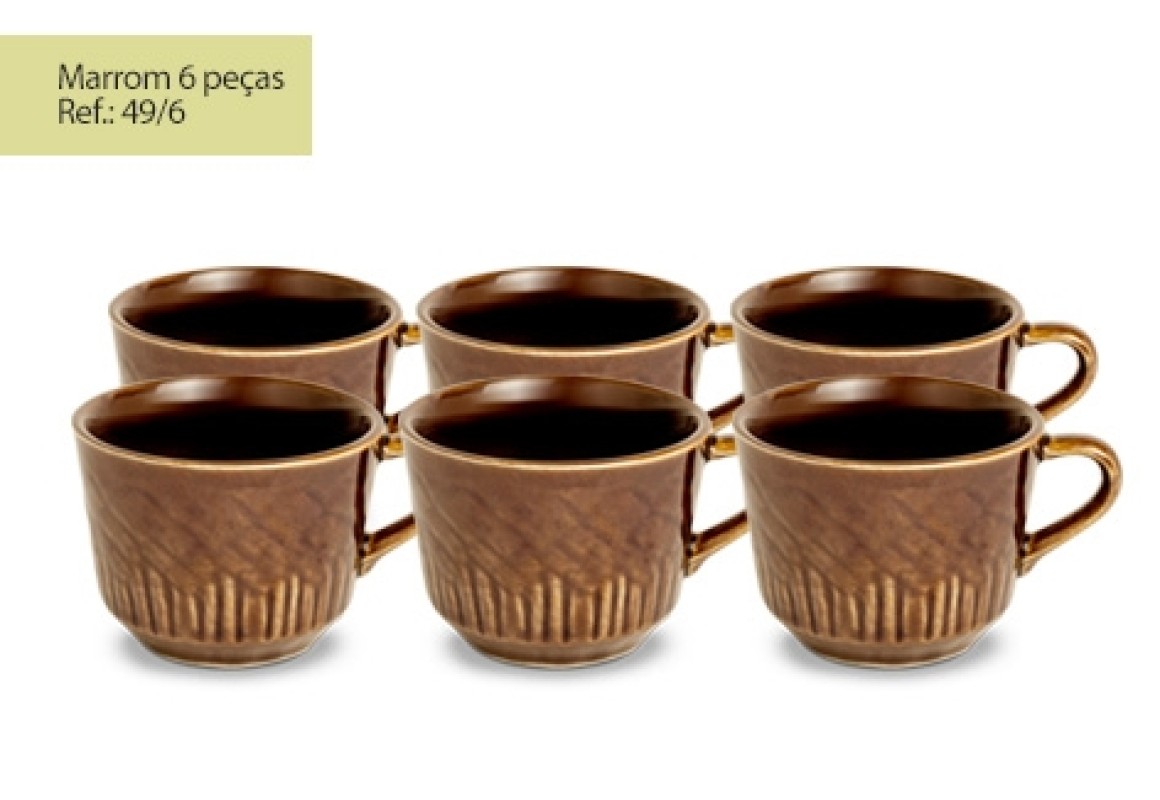 CJ XICARA CHA RELEVO MARRON 06 PÇS REF-49/6