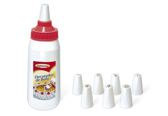 Com capacidade de 350 ml e 8 bicos, o produto é ideal para decorar tortas, bolos e cupcakes. Além de sua praticidade, seus bicos são de modelos diferentes, possibilitando formas variadas para decoração.