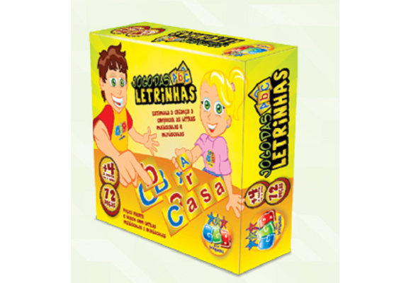 O jogo das letrinhas estimula a criança a conhecer as letras maiúsculas e minúsculas, além de conter 72 peças com letras maiúsculas e minúsculas na frente e verso.