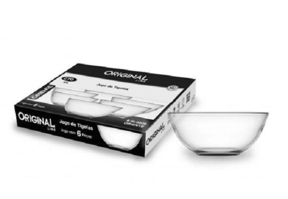 JOGO DE TIGELA VIDRO 6PÇS REDONDA LISA 12,70CM REF-SL0809 REF-0809