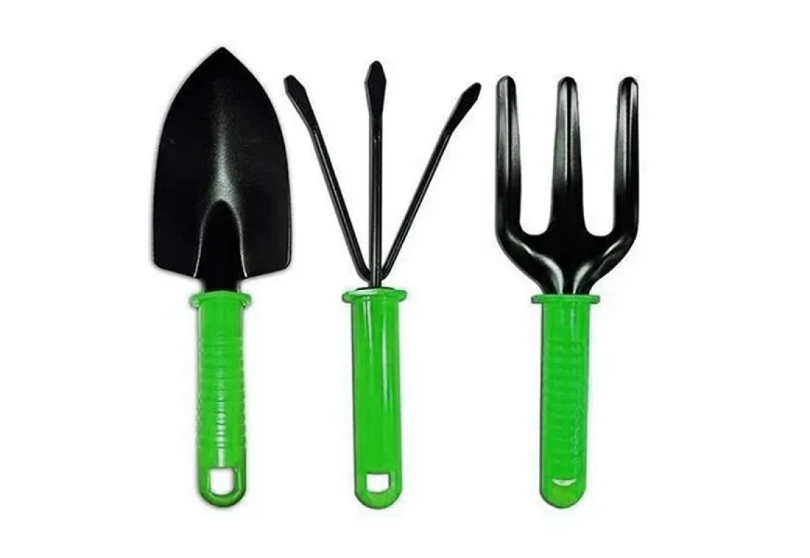 Kit Jardinagem 3 Ferramentas Metal Cabo Plástico Pá Larga Rastelo e Garfo, Startools