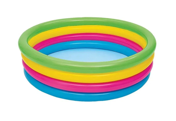 Ela conta com 4 anéis infláveis e acabamento colorido.