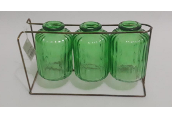 VIDRO KIT VASOS SUPORTE C/3 (VERDE DOURADO) REF-64576005